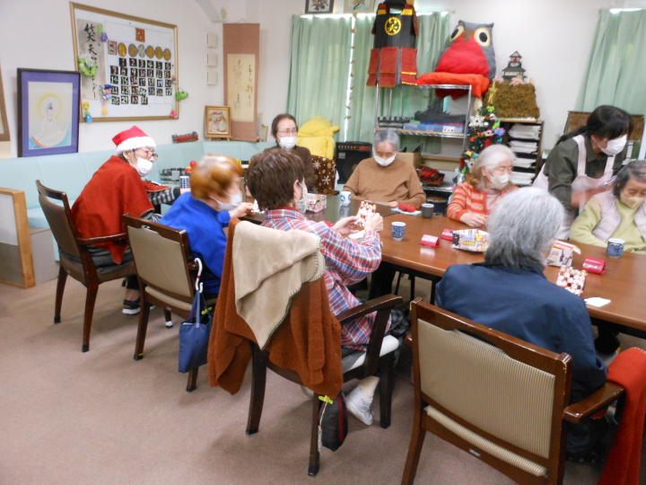 クリスマスは、1週間通しの全員参加型「笑天家ビンゴゲーム大会」毎日5名の方にとっても素敵なプレゼントをご用意。数字が読み上げられる度に(有った~!無いわ~)の大合唱 いつも楽しいイベントです。